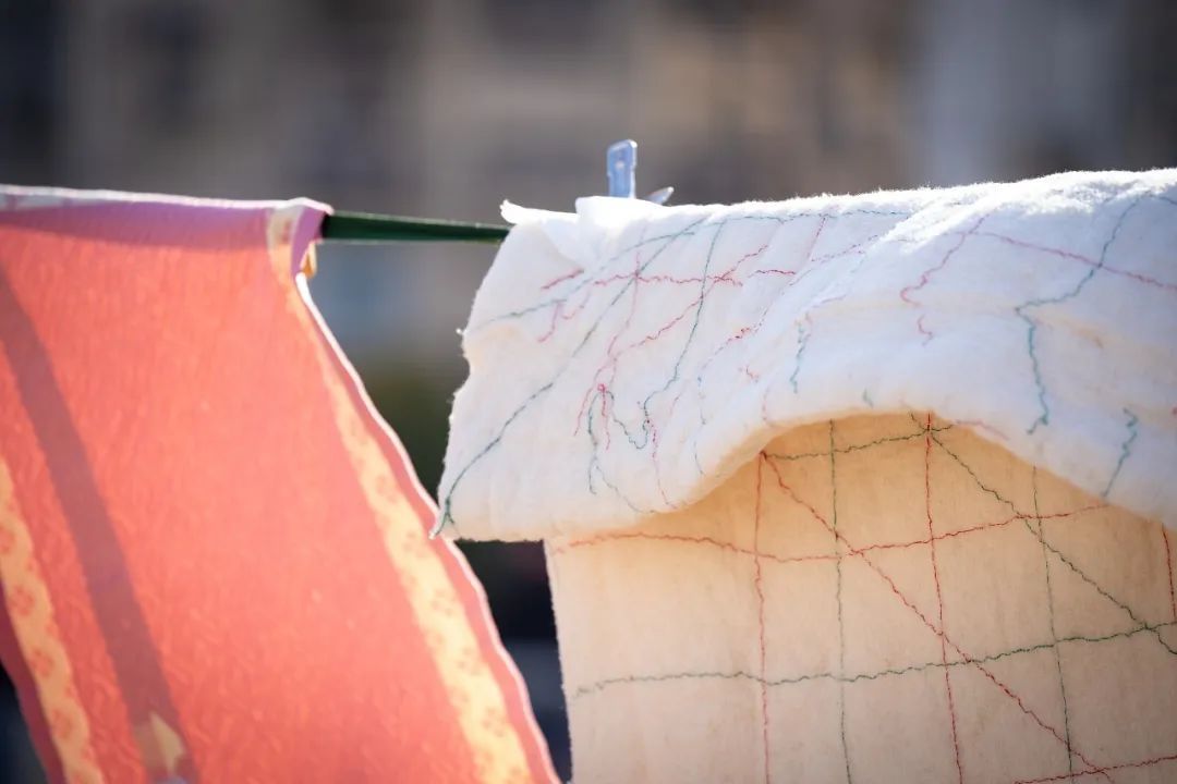 很多人晒被子都是裸晒,其实可以在被子上加一层旧的床单,这样既能避免因强光照射导致面料变黄褪色,又能挡住灰尘、花粉等落在被褥上。